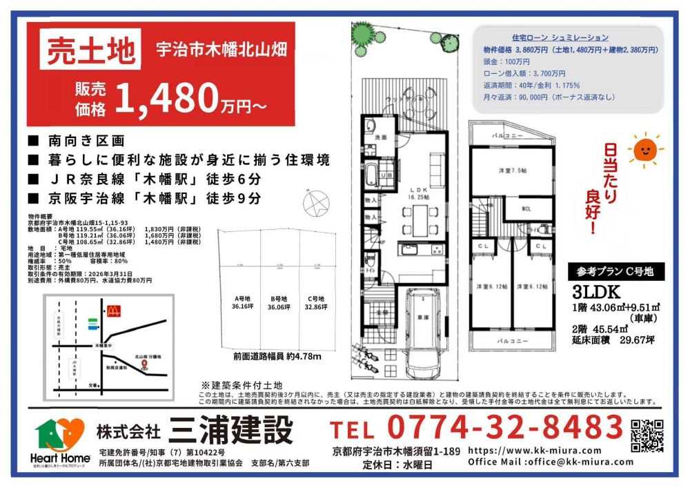 売土地 宇治市木幡北山畑分譲地