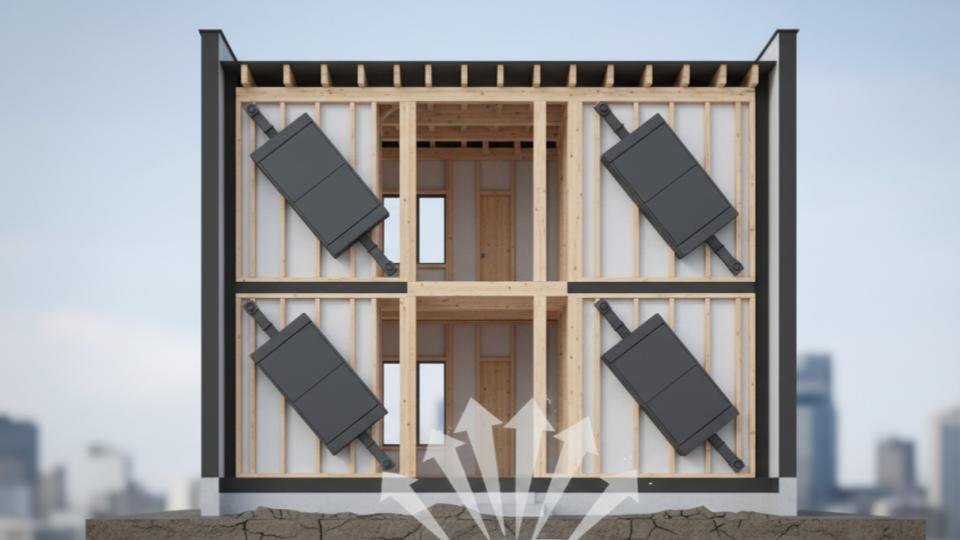 制振ダンパーの最大の効果は、地震発生時に建物に伝わる揺れのエネルギーを吸収・減衰させることです。